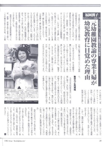 日経キッズ+5月号に室長福岡潤子のインタビュー記事が掲載されてます。(2007年)