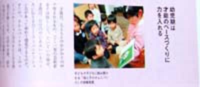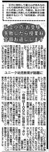 「お受験」ビジネス最前線に教育業界初の「PL法」授業料返還制度と題し授業風景・幼児の手作り作品・室長の写真入りで紹介されました。