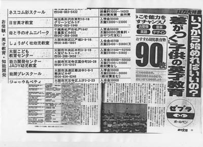 「お受験」ビジネス最前線に教育業界初の「PL法」授業料返還制度と題し授業風景・幼児の手作り作品・室長の写真入りで紹介されました。